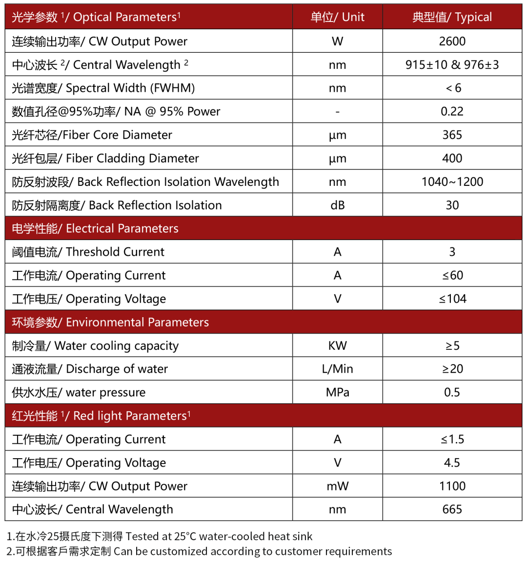 度亘核芯新一代UH系列超高功率光纤激光器泵浦——单泵功率突破2600W