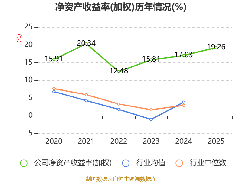 数据显示,2025年公司加权平均净资产收益率为19.26%,较上年同期上升2.23个百分点。公司2025年投入资本回报率为18.86%,较上年同期上升1.64个百分点。