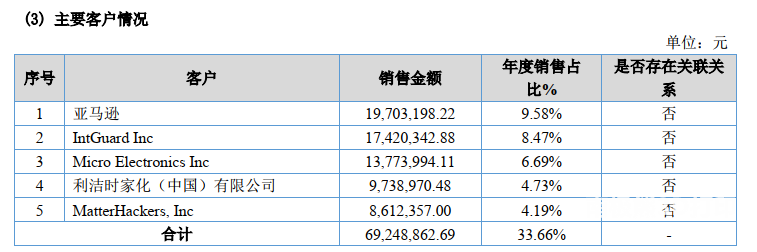△主要客户情况,其中卖给亚马逊的金额达1900多万,通过电商渠道卖2D打印材料大幅增长