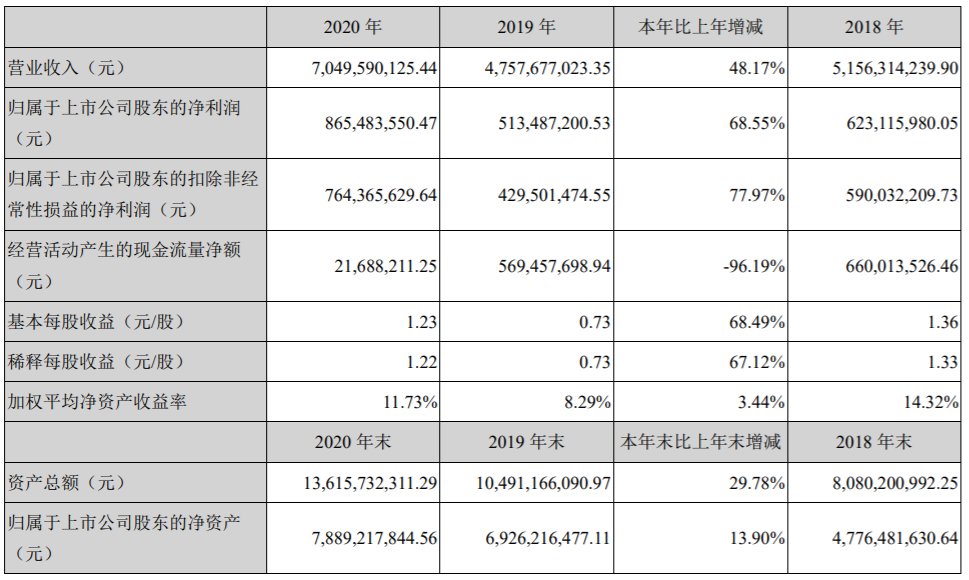 4月26日晚间,中际旭创股份有限公司(简称中际旭创)发布2020年度报告,报告期内,公司实现营业收入7,049,590,125.44元,同比增长48.17%,净利润865,483,550.47元,同比增长68.55%。中际旭创2020年业绩主要受益于流量的快速增长以及海外重点客户加大资本开支投入和批量部署400G机会。同时,国内 5G网络建设的快速推进带来了5G光模块需求的增长。