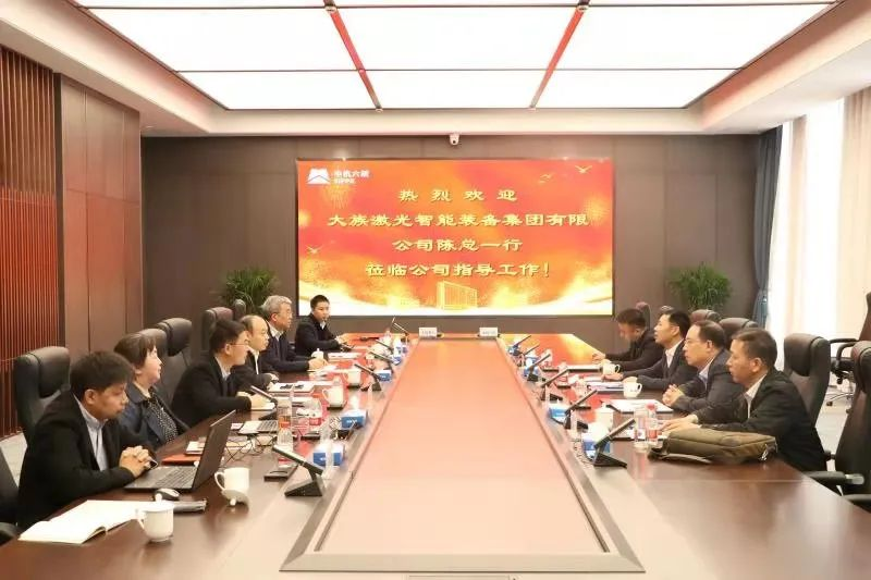 中机六院毛总对陈总一行表示热烈欢迎,对中机六院与大族激光智能装备集团的强强联合表示热烈的祝贺,并围绕其公司三大业务、三大领域、三项创新技术等方面详细介绍了业务发展和科技创新情况。毛总表示,对此次战略合作充满信心,希望双方发挥各自优势,在智能工厂、智慧园区、科技研发等方面建立长期、稳定的战略合作关系,共同开创合作共赢的新局面。