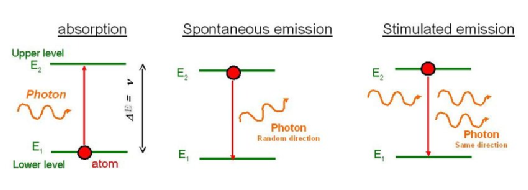 在降功率频率点以上,激光放大器的泵浦连续工作,在相邻脉冲间隔(T)内激发掺杂稀土离子从基态(ground state)跃迁到激发态(excited state),实现泵浦储能,此时没有信号光提取能量,增益介质内储能增加,犹如水坝蓄水,水位升高。信号脉冲经过后,通过受激发射过程,诱导处于上能级的离子以之相同的波长和方向发射,实现脉冲放大,犹如水坝开闸放水,形成洪峰。