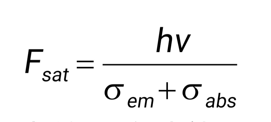 如图1所示,除了泵浦受激吸收和信号受激发射,激发态的离子还会通过自发辐射不断损耗,因此储能不可能无限增加,限制通光方向横截面储能密度的物理量称为饱和通量(Fsat),主要由信号激光频率(v)位置的吸收截面( σabs)和发射截面(σem)决定。饱和通量与光纤通光面积(Af)的乘积即为饱和能量(Esat)。物理上Esat是使激光增益下降到小信号增益的1/e(~37%)时对应的输入脉冲能量。