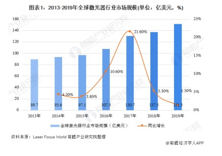 2013-2019全球激光器行业市场规模及增长率