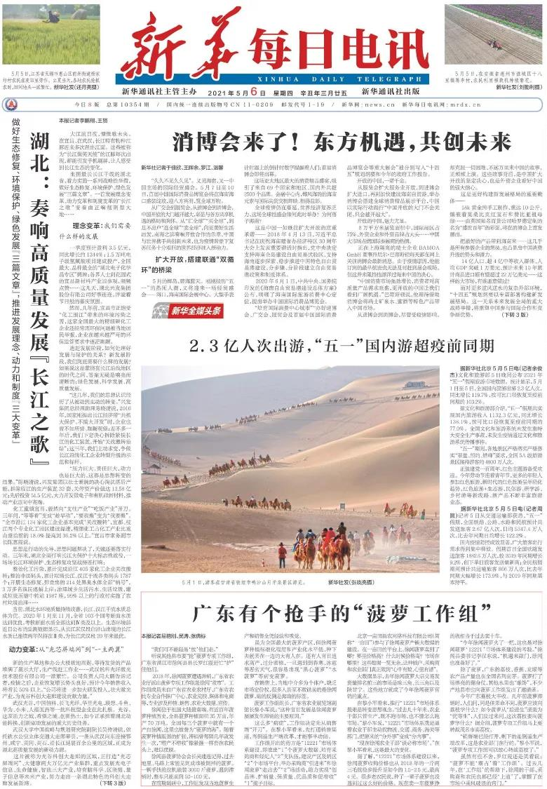 5月6日,《新华每日电讯》头版头条报道湖北,其中提到:“光谷,这座活力之城、希望之城、创新热土,如今正承担着湖北动能转换、创新驱动发展的重大历史任务。”