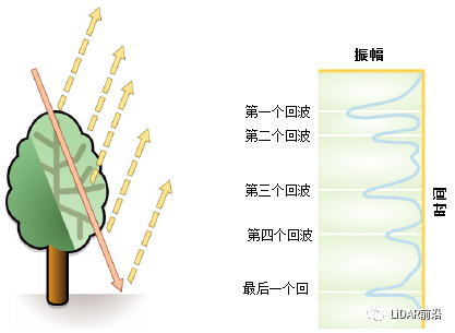 从激光雷达系统发射的激光脉冲会从地表面和地表上的物体反射:植被、建筑物以及桥梁等等。发射出的一个激光脉冲可能会以一个或多个回波的形式返回到激光雷达传感器。任何发射出的激光脉冲在向地面传播时,如果遇到多个反射表面则会被分割成与反射表面一样多的回波。