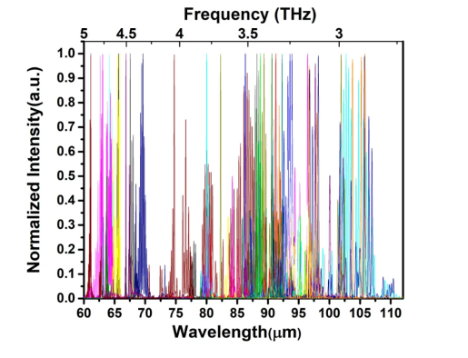 图1:不同THz-QCL激光光谱归一化后的总和图。
