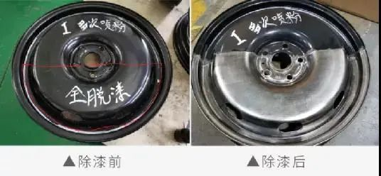近年来,中国汽车工业快速发展,轮毂作为汽车中关键的零部件,其制作的工艺技术越来越受到人们的重视。为了使汽车轮毂更美观,轮毂生产阶段的表面处理已经成为轮毂加工工艺重要的一环,其表面处理一般可采用镀铬、抛光、喷漆和喷粉等多种方法。其中采用轮毂喷漆工艺加工的轮毂,因受工艺限制,约会产生10%—15%的不合格品(如橘皮、多次喷涂等),需除漆返修重新喷涂。