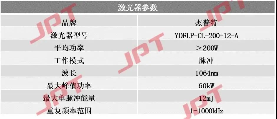 本试验中使用的激光器为200W多模脉冲光纤激光器,激光器的参数如下表1所示。