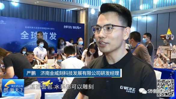 在现场,济南金威刻科技发展有限公司产品研发经理严鹏告诉记者:这款雕刻机上的 AI摄像头可以自动识别提取图案,自动匹配参数,自动聚焦。与传统的机器相比,省去了调节功率、焦距、切割数据等参数的步骤。并且它采用的是全封闭的设计,安全比较有保障。