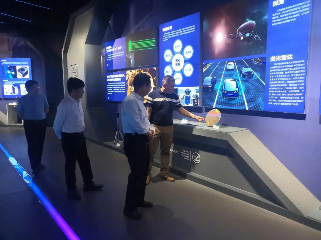 在齐鲁激光科技馆,齐鲁激光共享产业园工作人员以及园区入驻企业家颜景川代表详细介绍了激光的原理、激光的发展历程,激光在生产、通讯、信息处理、医疗美容、3D传感、军事、文化教育以及科研等方面的具体应用。