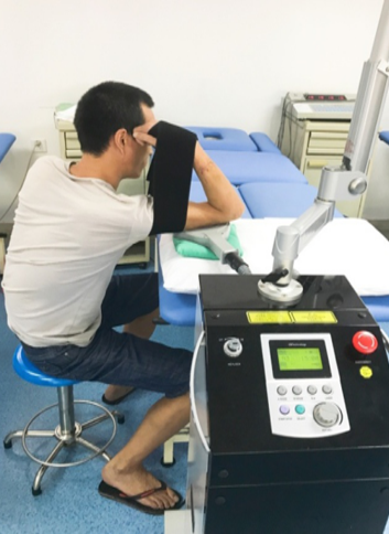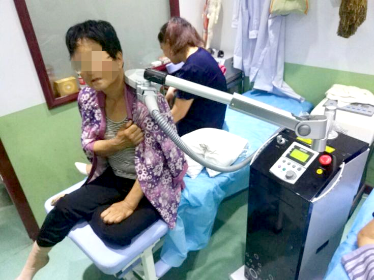肩周炎:使用磁刺激刺激患者三角肌前束、斜方肌、冈上肌,可先手动寻找患者痛点部位。强磁刺激可深入组织7-10CM进入组织不锐减磁疗强度,因而可达患者深部肌肉组织。肩周炎患者,女性,患病多年,胳膊抬不起,使用激光磁两次治疗后,胳膊就可抬起来了。