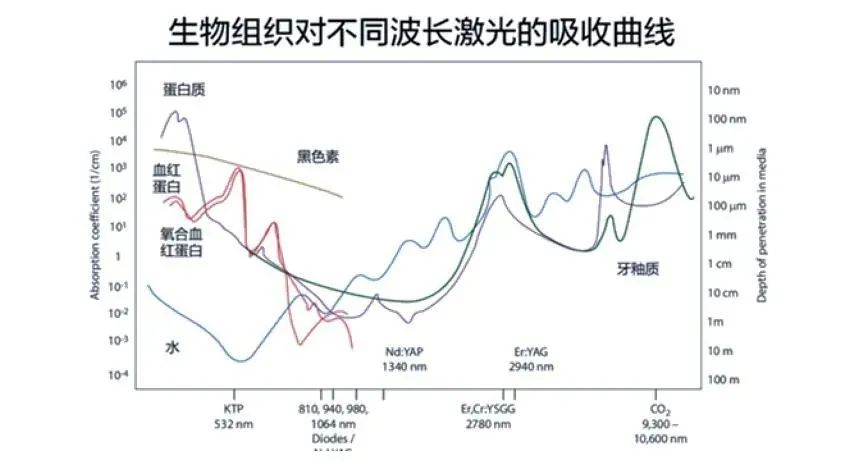 在实际治疗中,医务人员经常要同时面对硬组织切割、软组织切割、消毒、止血、促进愈合等治疗需求,这就需要用到不同波长的激光。810nm波长的激光可以被细胞内的酶有效吸收,产生更多的ATP,这种物质也是细胞动力学的能量来源;980nm波长的激光可以大大增加微静脉和大静脉系统的血流量,有助于加速身体内的物质交换;650nm波长的激光被皮肤中黑色素大量吸收,由于该波长激光可以抑制细菌并促进细胞生长,在伤口愈合和瘢痕组织调节方面具有令人难以置信的效果。此外,还有450nm,1064nm,1470nm等不同波长的激光器,也可以给我们带来不同的治疗效果。