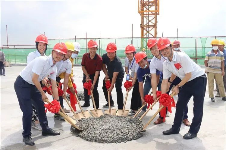 金锹置土满富贵,千沙万粒送吉祥。2021年6月3日10:30,伴随着热闹喜庆的氛围,封顶仪式进入高潮,海目星激光公司领导、工程承建单位及项目代表共同执起金锹,一起将最后一方混泥土铲入预留洞,这标志着海目星(江门)激光智能制造产业园二期项目研发车间正式荣耀封顶!