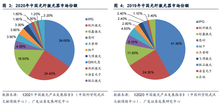 除此之外,从业绩表现和市场占比来看,2020年国内其他光纤激光器厂商也都不同程度地出现增长。其背后原因是面对疫情,大家都同仇敌忾在各自赛道上抓住了产业复苏的红利,而不是一味地恶意竞争。例如,创鑫激光力推万瓦激光、锐科激光发力激光清洗、GW研发976nm泵浦源、大科激光重点在高亮度、IPG发力激光焊接等等,可谓是百花齐放、各有千秋。