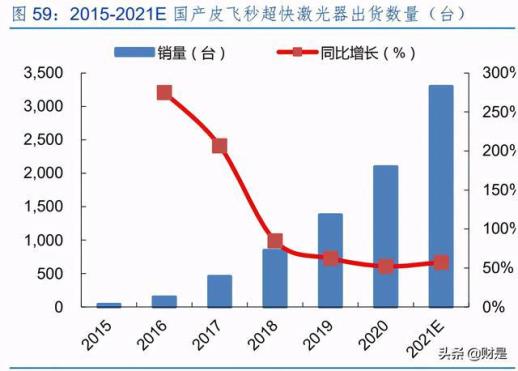 超快激光器成为精密加工的重要方向,并且发展迅速。随着消费电子、新型显示、生物医疗、 3D 打印、高端装备等新应用的发展,对于激光加工精细度要求越来越高,超快激光已经成为精 密加工的重要方向。