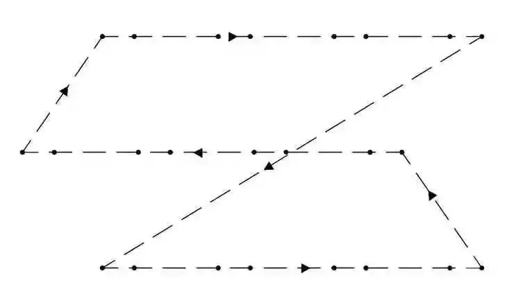 而压缩空程时间,可明显提高设备的效率。如果将次第完成的三个动作,变为“同时”完成,便可缩短空程时间,即切割头从点A开始向点B移动时,同时上升;接近点B时,同时下降,犹如蛙跳动作一样,如图3 所示。采用这种空行程方式,其只占用了从点A 到点B 平动的时间,省去了上升、下降的时间。激光切割机采用蛙跳的空行程进给,有效减少了空行程运动时间,加工效率便可有效提升。