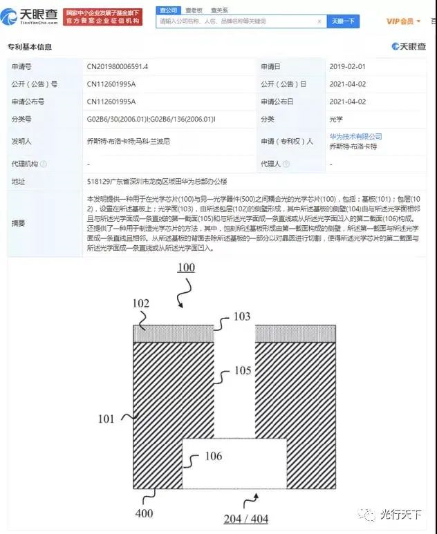 近日,华为技术有限公司公开一项名为“耦合光的光学芯片及其制造方法”的发明专利,申请日期为2019年2月,公开号为CN112601995A。该专利摘要显示,本发明提供一种用于在光学芯片与另一光学器件之间耦合光的光学芯片,包括:基板;包层,设置在所述基板上。