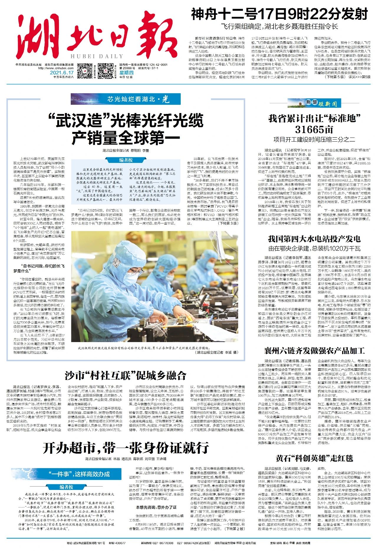 6月17日起,《湖北日报》推出系列报道,关注湖北五大“新名片”产业,首篇关注光电子。