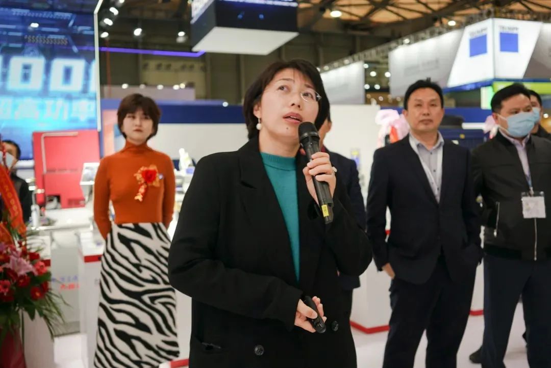 大族光子总经理马淑贞介绍20KW光纤激光器各项核心架构与性能优势