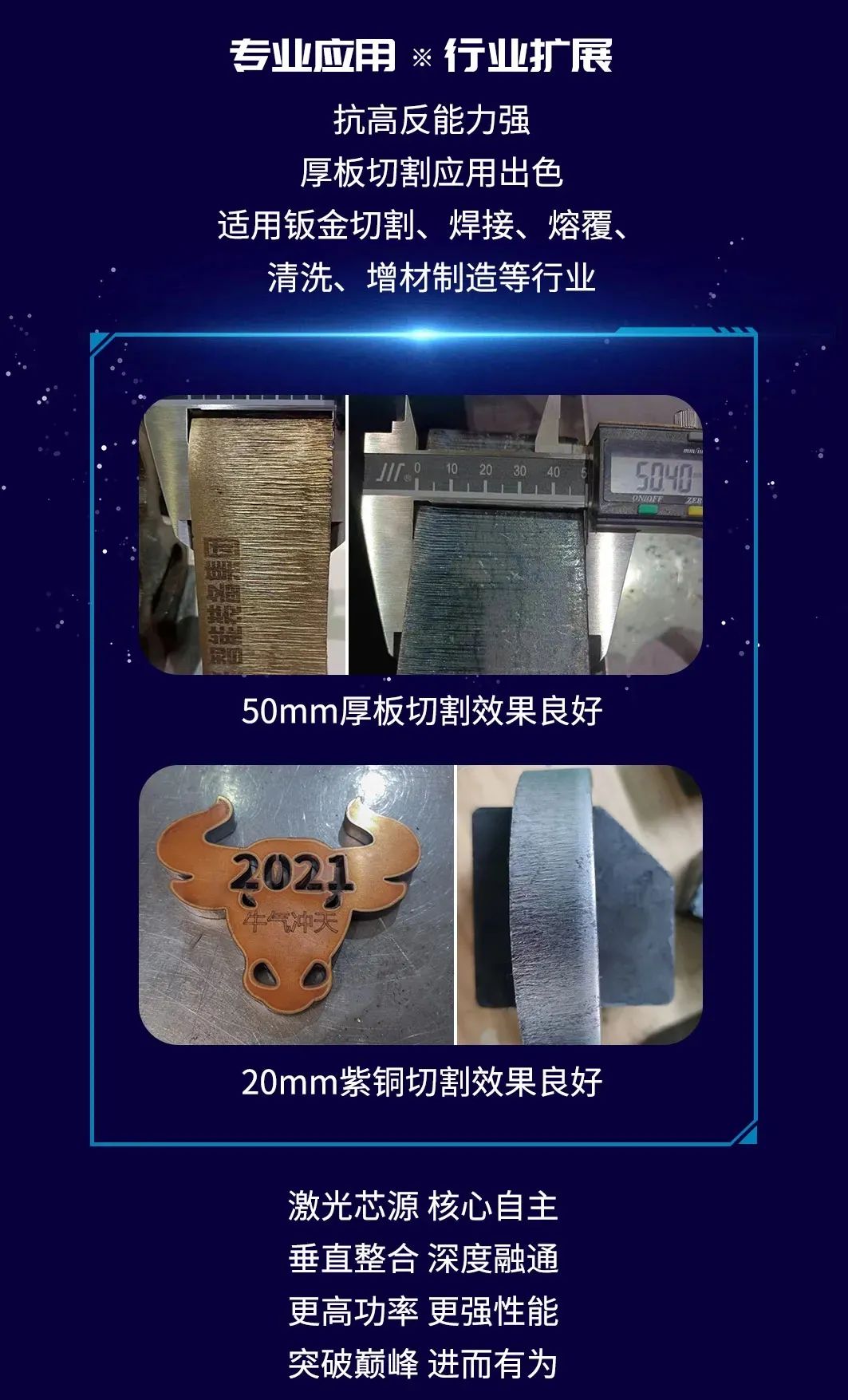 大族激光20KW光纤激光器在展会现场重磅发布,并且经过数十个大族激光客户应用测试,各项性能表现优异,衷心感谢各界朋友对大族激光切割机和核心光源的支持。大族激光全面升级自主核心技术,聚焦差异化竞争优势,与行业共享、开放激光器、切割头、数控系统核心部件,与各界朋友携手追光逐梦,协同共生、智创未来!