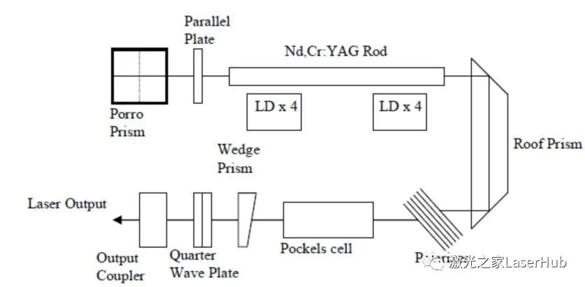 图1 日本“月亮女神”SELENE探测卫星激光高度计搭载的激光器谐振腔构型