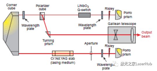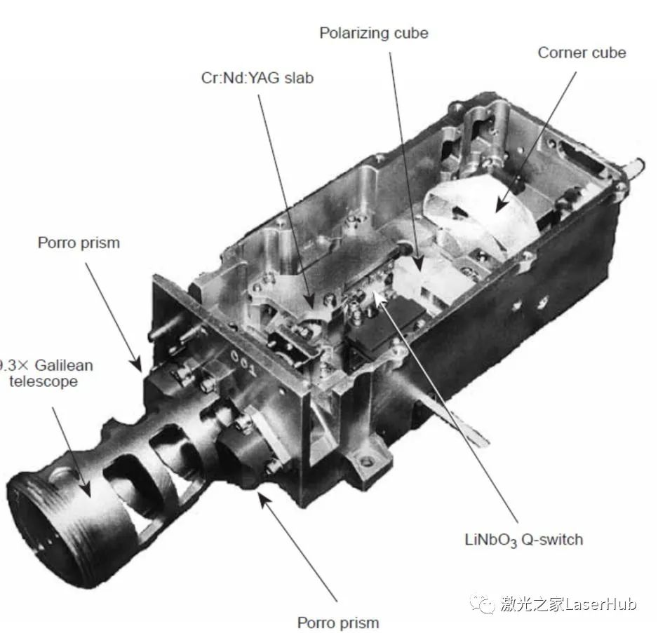 图3 美国NEAR近地小行星探测器搭载的NLR激光测距仪空间固体激光器采用了角锥棱镜腔和正交波罗棱镜腔向结合的组合棱镜式谐振腔构型