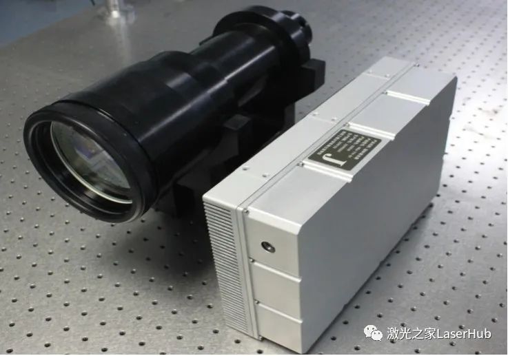 为满足该类型激光雷达的光源需求,本文作者团队在“核高基”专项课题资助下,使用全国产元器件,采用种子注入掠入射放大结构的MOPA激光器和大口径高分束阶二维衍射分束器(DOE),将近衍射极限的单光束分束成50×2交错排列的多光束阵列输出。图9为多光束激光器实物,右侧为传导冷却的MOPA激光头,左侧为一体装配的50倍光学发射天线及多光束分束器。