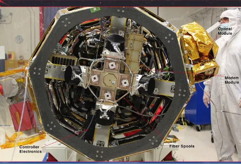 LLCD是美国实施的深空光通信项目,它试图在绕月飞行器与地面接收终端之间建立双向光通信链路,验证在月地距离情况下通过轻小型星载终端进行高速激光通信的可行性。该项目于2008年启动,2013年10月升空,四个月后试验结束。LLCD还证明了20Mbps的上行速率(用于回送往返月球的零误差高清视频,这使得今后人类探月任务极富吸引力),还为宇宙飞船提供了同步厘米级高精度测距,这可用于改进行星天体的重力模型。