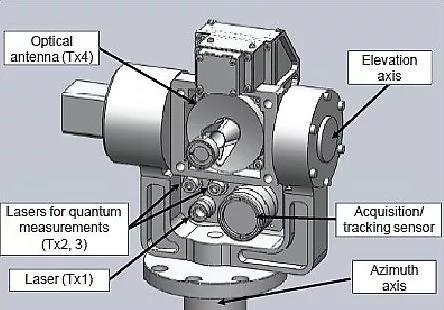 SOCRATES计划目标是开发适合搭载于50kg级小卫星的超小型LEO激光通信终端—SOTA((Small Optical Transponder小型光通信终端),总质量仅为5kg左右,码速率为1~10Mbit/s,主要用于传输遥感图像和遥测数据。下图为SOTA终端的工程飞行模型。该终端上安装了4个激光模块,2个作为激光通信光源,其余2个作为光量子密钥分发的纠缠光子源。