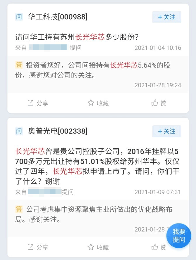 另,华工科技2021年1月在互动平台上曾表示,间接持有长光华芯5.64%的股份。