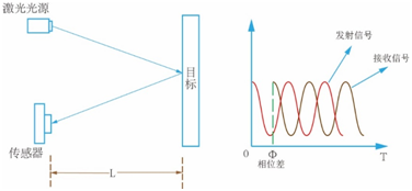 其中:L为测量距离,c为光在空气中传播的速度,T为调制信号的周期时间, ?为发射与接收波形的相位差。