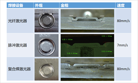 电池的极柱即电池的正负极,一般正极采用铝,负极采用铜。常用的结构为铆压结构,铆压完成后进行满焊,其大小一般为直径8的圆。焊接时,在满足设计要求的拉力和导电性能的情况下,优先选择光束质量好、能量分布均匀的光纤激光器或是复合焊激光器,采用光纤激光器、复合焊激光器焊接可以实现的电极柱的铝-铝结构焊接、铜-铜结构焊接稳定性,减少飞溅、进而提升焊接良率。