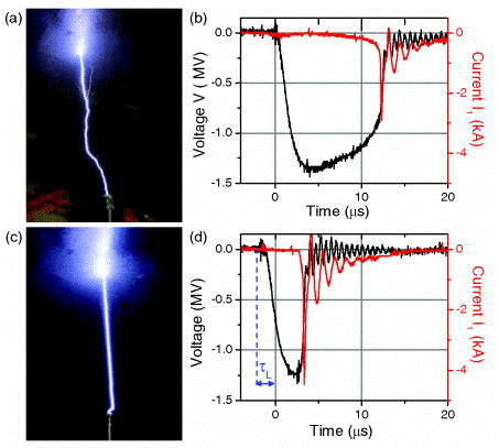 之前的一些实验曾证实,飞秒激光脉冲可以制造电离空气通道,形成“引导线”。深入的研究表明这些通道的作用距离有可能超过50米。