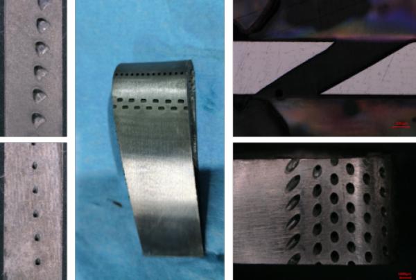 近日,中国科学院上海光学精密机械研究所激光智能制造技术研发中心顺利完成了中国航发四川燃气涡轮研究院部署的《双层壁叶片异形气膜孔制孔技术工艺攻关》项目,研究内容、技术指标符合项目合同和技术要求。该项目实现了机用单晶双层壁涡轮叶片复杂异形气膜孔的超短脉冲激光制造。