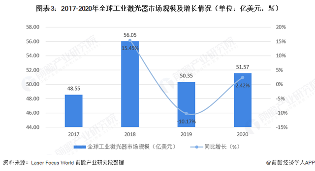 2020年全球工业激光器市场规模增速放缓