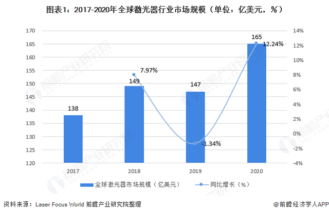2020年全球激光器市场规模突破160亿美元,呈持续增长态势