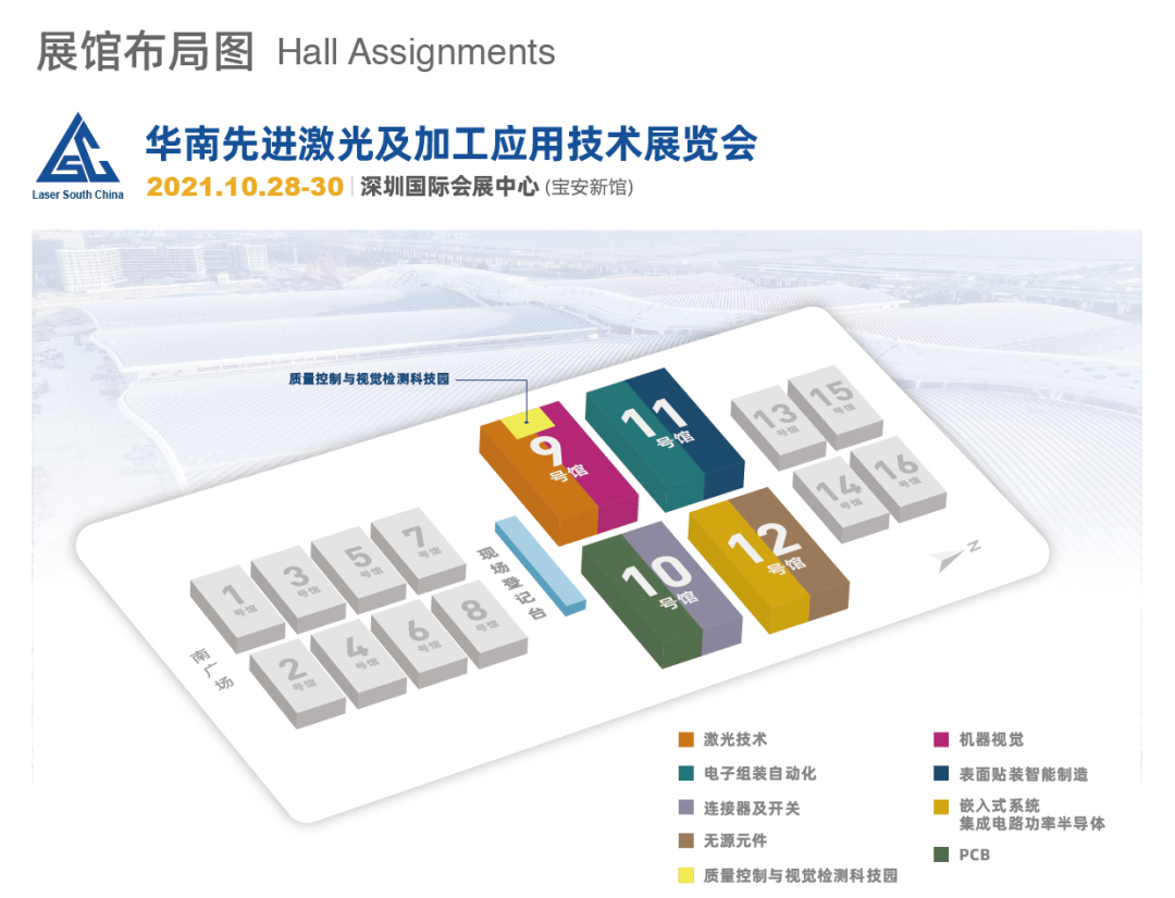 华南激光展位于深圳国际会展中心(宝安新馆)9号展馆,靠近南登录大厅,将携手机器视觉展华丽亮相,展示面积20,000平方米,近300家参展商共襄盛会。
