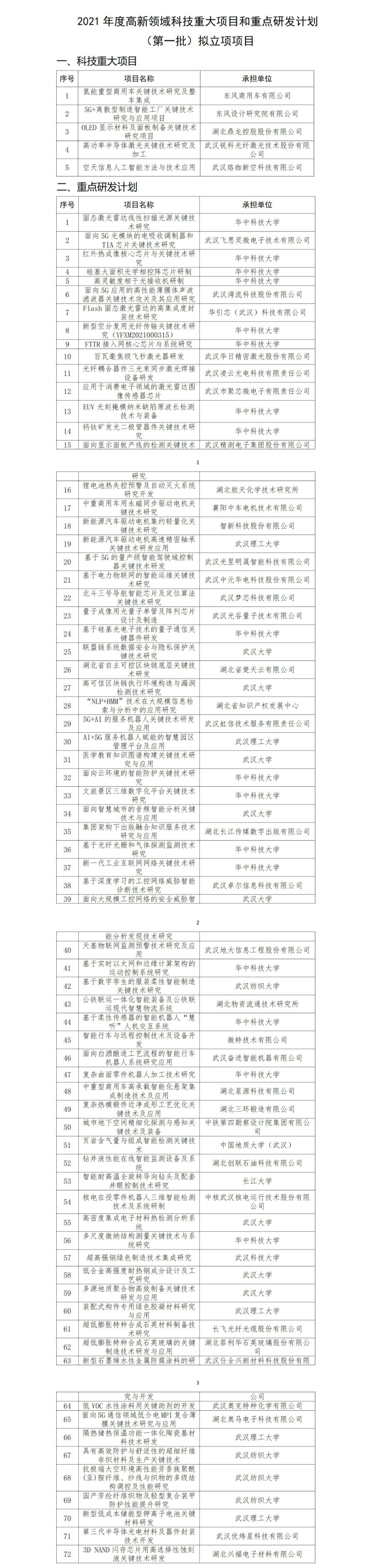 今年4月,湖北省科技厅启动2021年度科技重大项目和重点研发计划申报工作,共13个科技重大项目以及169项重点研发计划项目的申报。此次申报工作围绕省委、省政府关于“光芯屏端网”、大健康、智能制造等重点产业和国民经济社会发展各领域创新需求,以提升区域产业竞争力、企业创新能力,推动经济和社会协调发展为目标,集中优势科研人才团队“揭榜挂帅”,攻克一批关键核心技术,取得一批重大科技成果,有效支撑产业和经济社会高质量发展。