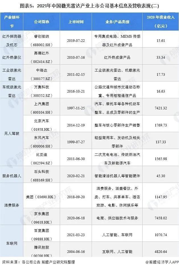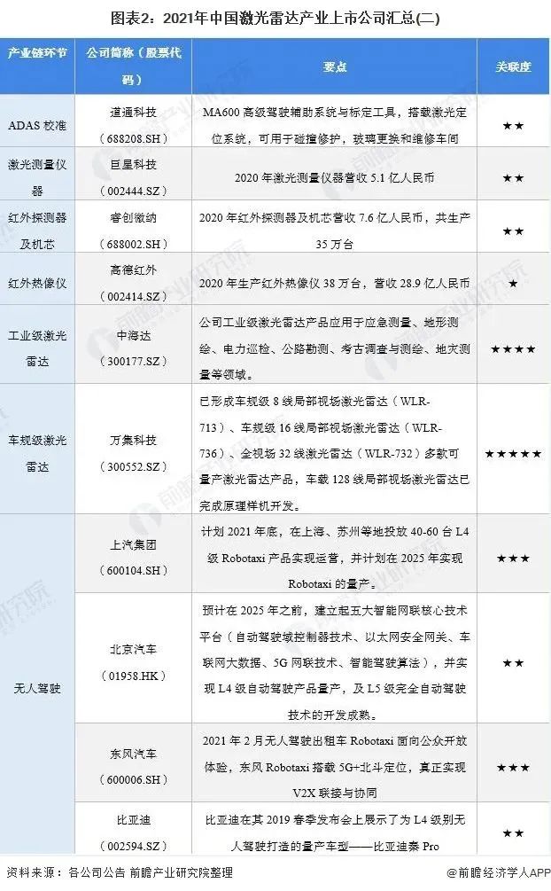 2、激光雷达产业-激光雷达成套设备制造上市公司业务布局对比