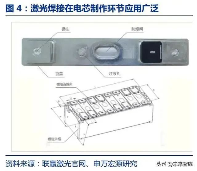 1) 材料契合度高:动力电池壳体多为铝材材质,更适合使用激光进行焊接,激光焊接防止飞 溅和气孔,有利于提升电池良品率及安全性能;