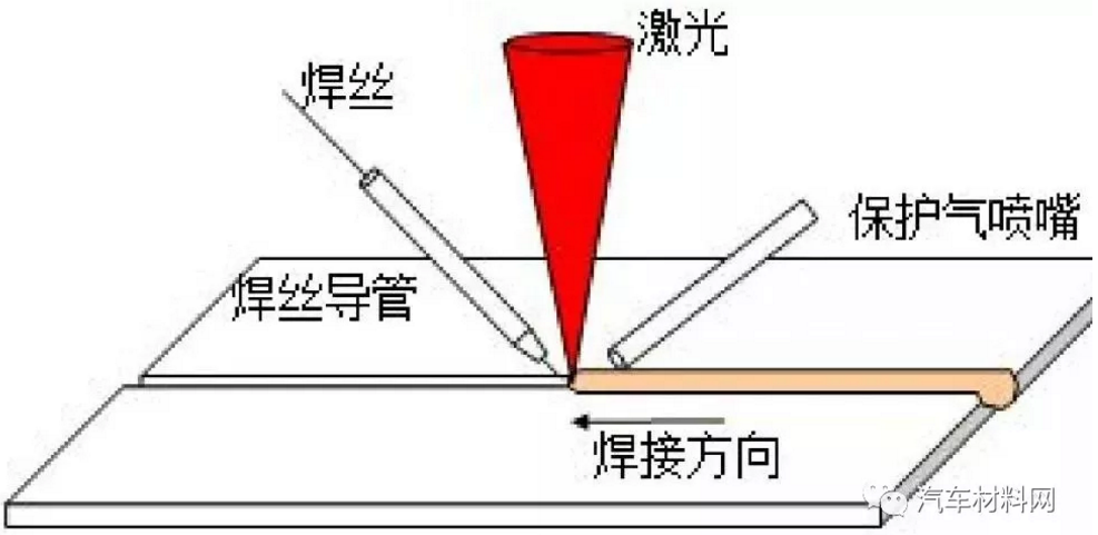 激光填丝焊是用与母材相同或相似材料的填充金属,将母材与钎料熔化后冷凝形成焊缝的方法。主要应用于:整车全身结构件以及汽车零配件产品。