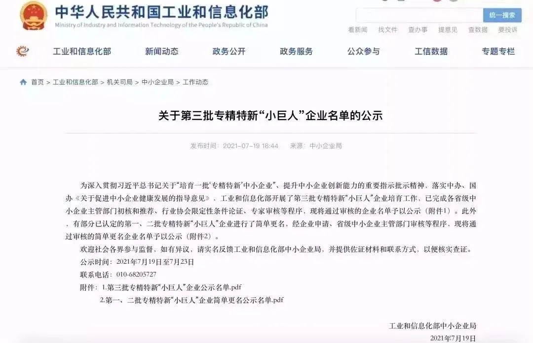 近日,从国家工信部网站获悉,飞博激光光荣入选国家第三批专精特新“小巨人”企业名单!