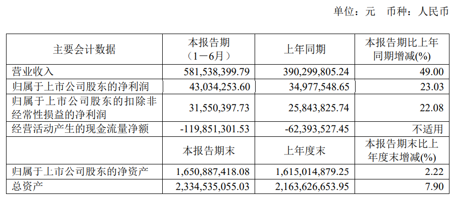 8月25日,杰普特发布2021年半年度报告。报告显示,2021年上半年,杰普特实现营收5.82亿元,同比增长48.99%;净利润4283.90万元,同比增长22.59%;实现归属于上市公司股东的净利润4303.43万元,同比增长23.03%;基本每股收益为0.47元。