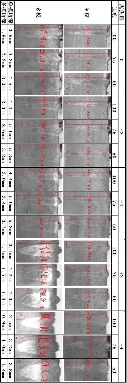 02)激光功率一定的情况下,随着离焦量的减小,无论采用单模还是多模激光器,焊缝熔深都会逐渐增大。