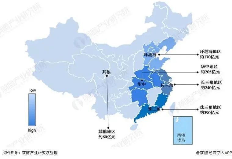 根据激光制造商情的数据,2020 年,珠三角仍然是激光产业规模最大的地区,产值达到 390 亿元,长三角地区激光产业约为 240 亿元,华中地区约 205 亿元,环渤海地区则有 170 亿元,其余地区预估激光产值约 60 亿元。