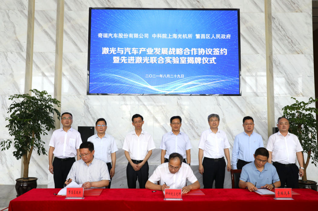 8月29日,奇瑞汽车股份有限公司、中科院上海光机所、繁昌区人民政府激光与汽车产业发展战略合作协议签约暨先进激光联合实验室揭牌活动在繁昌中科春谷激光产业园举行。