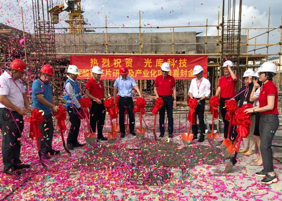 2021年8月31日上午,光库科技铌酸锂高速调制器芯片研发及产业化项目(简称:芯片产业园)封顶仪式在新园区内举行。光库科技常务副总经理兼首席技术官吉贵军博士与项目建设团队共同见证这一重要时刻,共享封顶祥瑞喜悦!