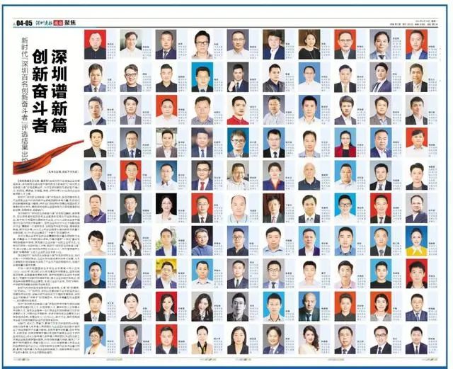 以下为深圳商报《创新奋斗者,深圳谱新篇——新时代“深圳百名创新奋斗者”评选结果出炉》全文: