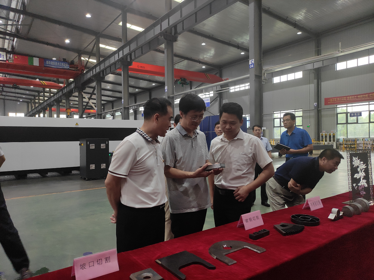 临沂市政协常委、二级巡视员、奔腾激光“红领书记”王文元和奔腾激光行政人事中心主任鲁苗向安丰和院长详细介绍了奔腾激光发展历程、产品应用、产业规划和行业前景;奔腾激光制造总监胡鸽为安丰和院长一行进行了现场切割和焊接演示,得到安院长及学院领导的高度认可。随后还参观了公司食堂和宿舍,安院长表示奔腾激光的食堂和宿舍标准非常高,能为员工提供良好的生活工作环境,他非常放心将学生放在奔腾激光学习成长。